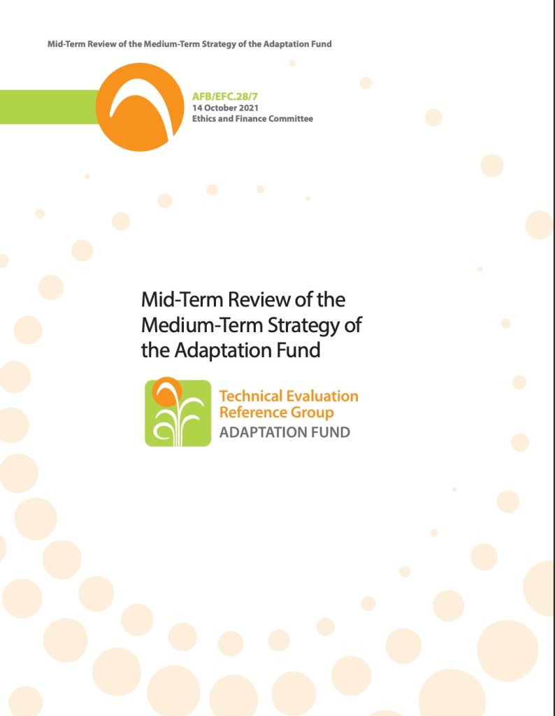 Background: At its 39th meeting (October 2022), the Adaptation Fund Board decided (Decision B.39/61) to adopt the Medium-Term Strategy (2023-2027). In March 2023 the Board requested (Decision B.40/72) AF-TERG to prepare a mid-term review (MTR) of the Fund’s Medium-term Strategy 2023-2027 (MTS2) and its implementation plan. This mid-term review (MTR) will be one of the main building blocks of the Comprehensive Evaluation.