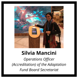 Silvia Mancini Operations Officer (Accreditation) of the Adaptation Fund Board Secretariat