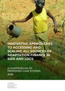 Developed by the Climate and Development Ministerial (C&DM) secretariat with support from SouthSouthNorth, the compendium responds to this challenge by showcasing innovative, scalable and country-led case studies from across LDCs and SIDS. The publication highlights four illustrative cases that demonstrate practical approaches to easing access to adaptation finance and scaling resources, advancing in particular C&DM Goal 2 (easing access) and Goal 3 (scaling finance).