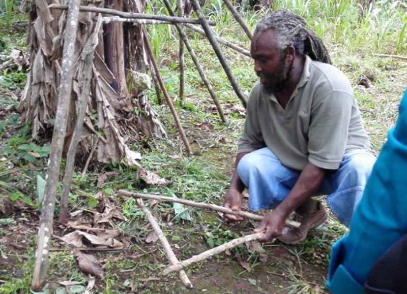 Jamaica-photos_Farmer demonstrating the use of an A frame
