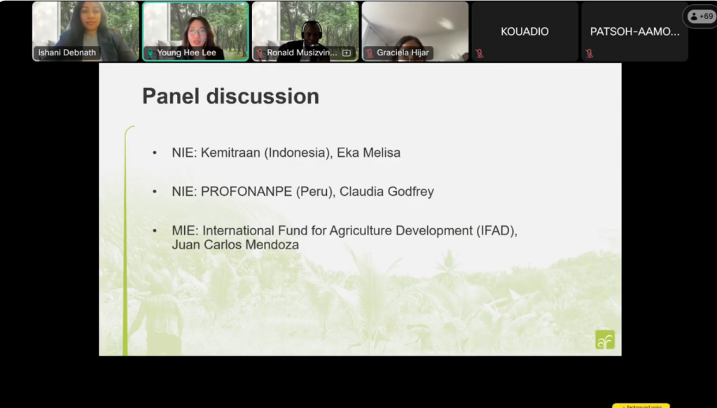 The Secretariat hosted a webinar on the updates to the Gender scorecard on 4 September 2025. The webinar delivered a structured series of sessions aimed at strengthening gender reporting and implementation practices. It highlighted progress, identified gaps, and outlined areas for improvement in gender mainstreaming efforts across projects. Participants received detailed guidance on the successful application of the Gender Scorecard which is directly linked to the reliability and completeness of gender data submitted by IEs through the PPR