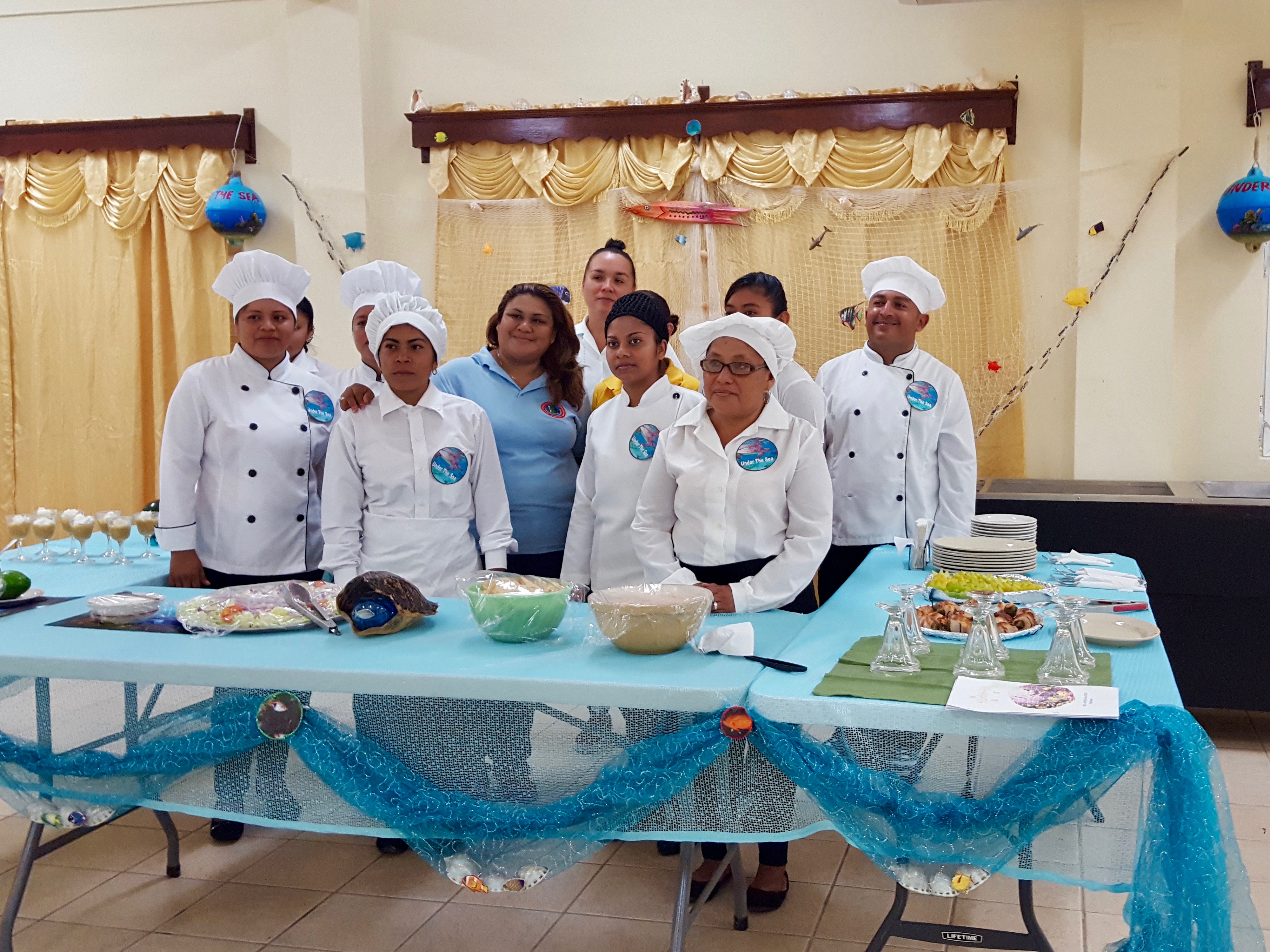 Food preparation trainees presenting their buffet style full meal course to MCCAP. Photo: Corozal ITVET